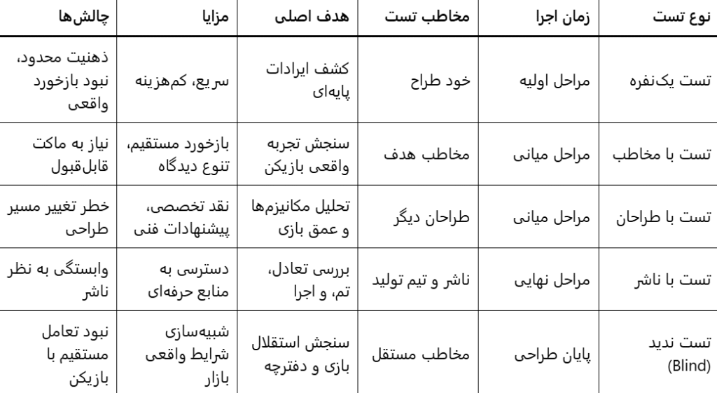 انواع تست ها بازی و کاربرد آنها